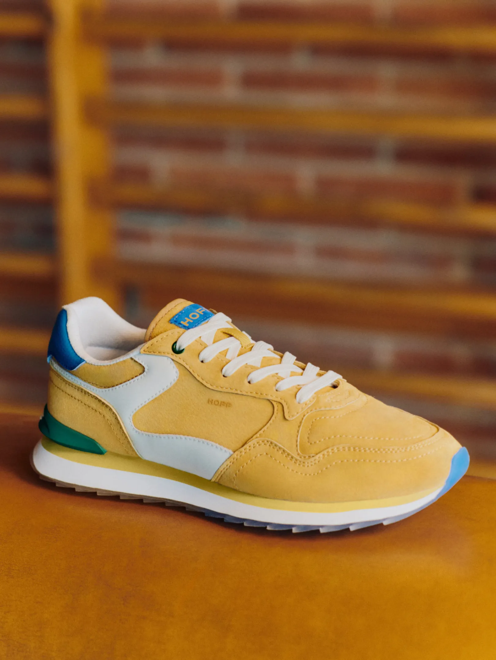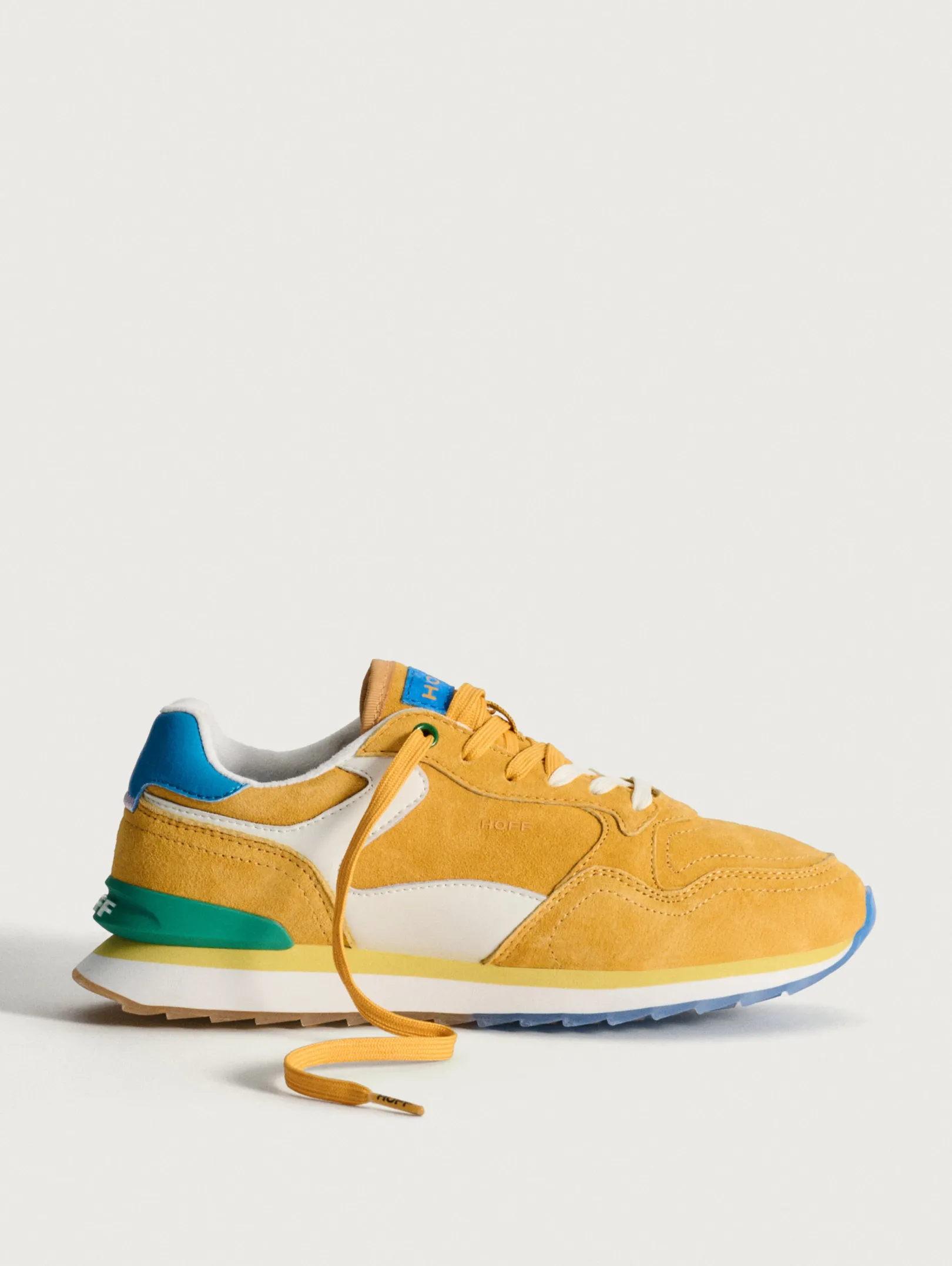 La zapatilla FLAVUS WOMAN de nuestra colección es un homenaje a los atletas que no solo alcanzan sus metas, sino que también expanden los límites de lo posible. Esta colección captura la esencia del atletismo y el estilo. Confeccionadas íntegramente en ante y presentadas en una vibrante paleta de amarillo dorado con detalles en azul, ofrecen un diseño que puede elevar cualquier atuendo, desde jeans casuales hasta estampados.