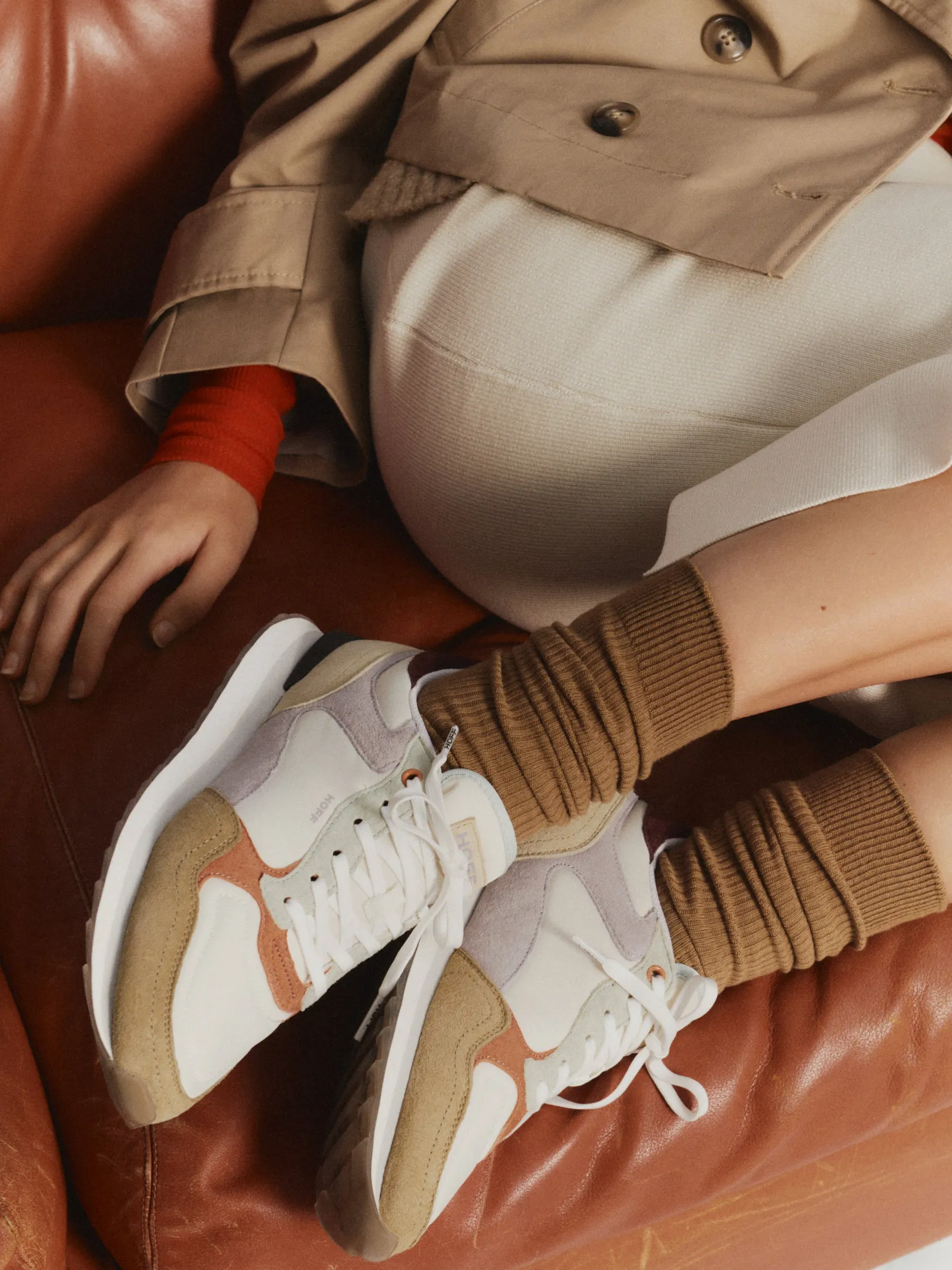 Las zapatillas Matera destacan por su combinación única de colores en tonos crema, caqui, lila pastel, con detalles en terracota y verde aguamarina. Esta mezcla original y armoniosa de colores las hace resaltar en cualquier situación. Confeccionadas con cuero y nailon, ofrecen durabilidad y estilo. La suela proporciona comodidad y tracción, mientras que la plantilla de Memory Foam (R) asegura una pisada suave y cómoda durante todo el día. Perfectas para quienes buscan unas sneakers versátil y con estilo, las zapatillas Matera son la opción ideal para completar cualquier conjunto con un toque de originalidad y frescura. Altura de la suela: 3 cm.
