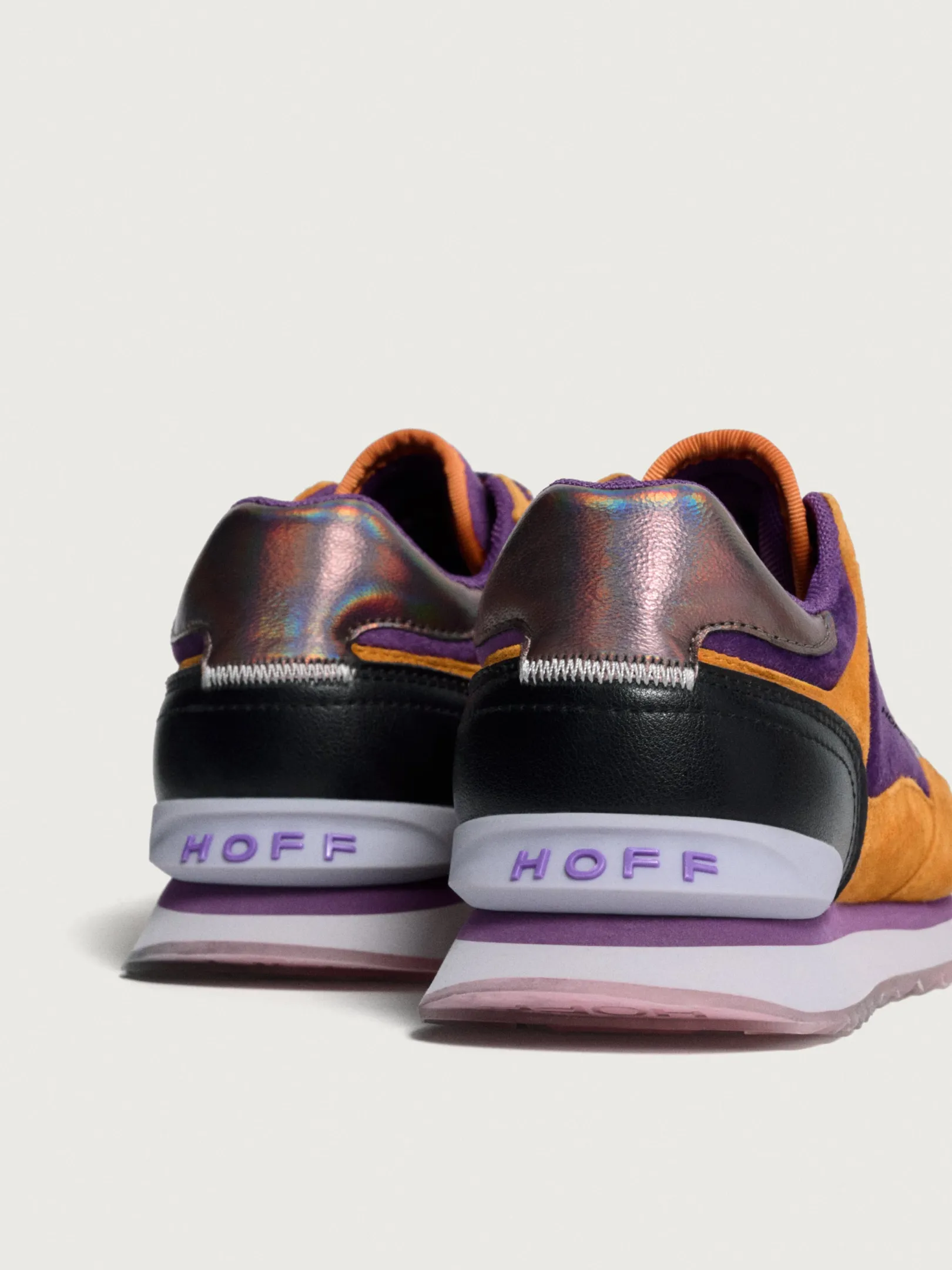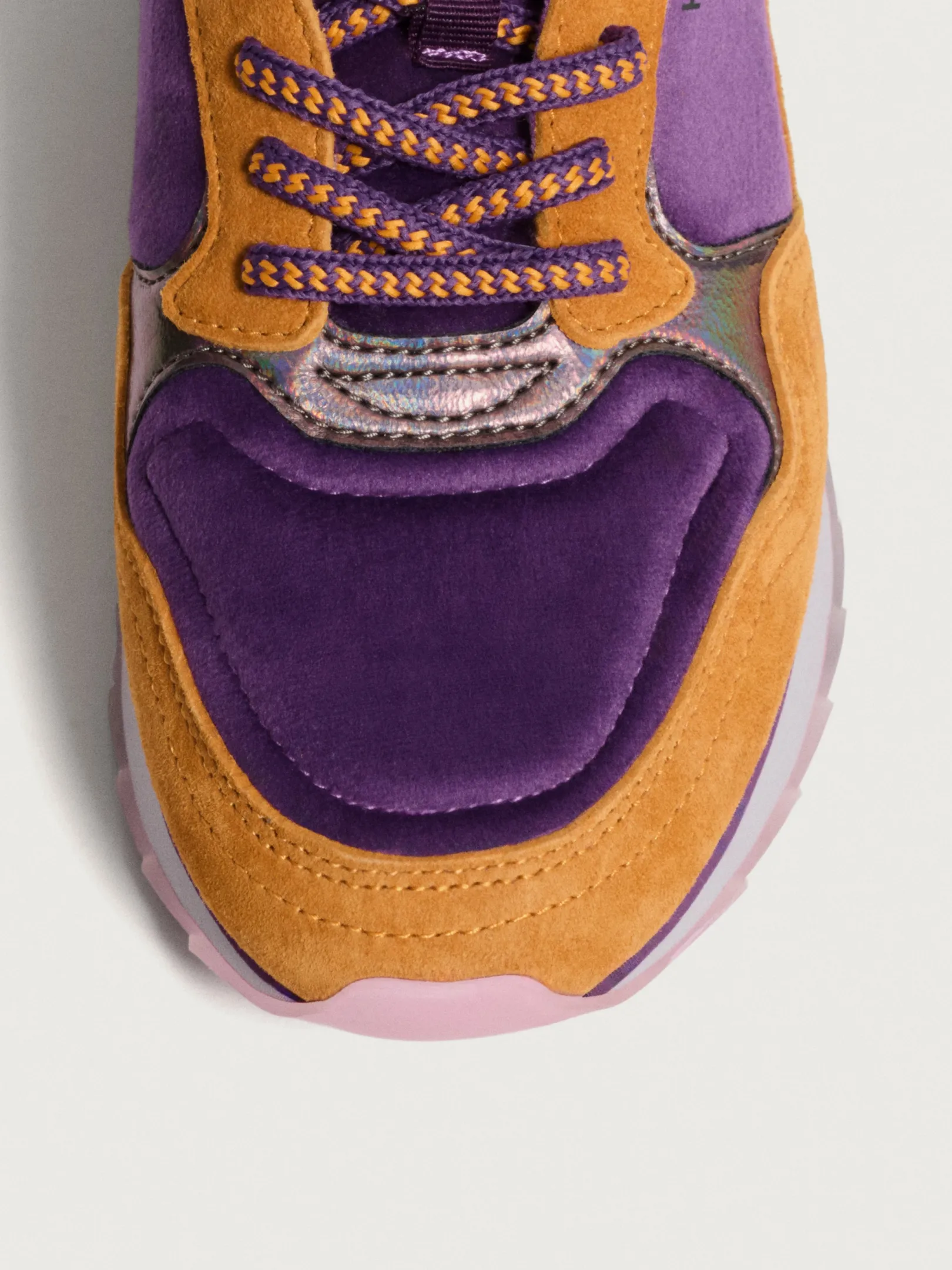 Singularidad y originalidad es lo que define a las zapatillas Modena. Con una combinación de piel de serraje en tonos naranja y morado, una talonera iridiscente y cordones a juego, estas zapatillas destacan por su estilo único. La mezcla de materiales como el cuero y el terciopelo ofrece una estética distintiva y sofisticada. Úsalas con un vestido midi en tono morado y accesorios minimalistas en naranja para resaltar los detalles de las zapatillas.