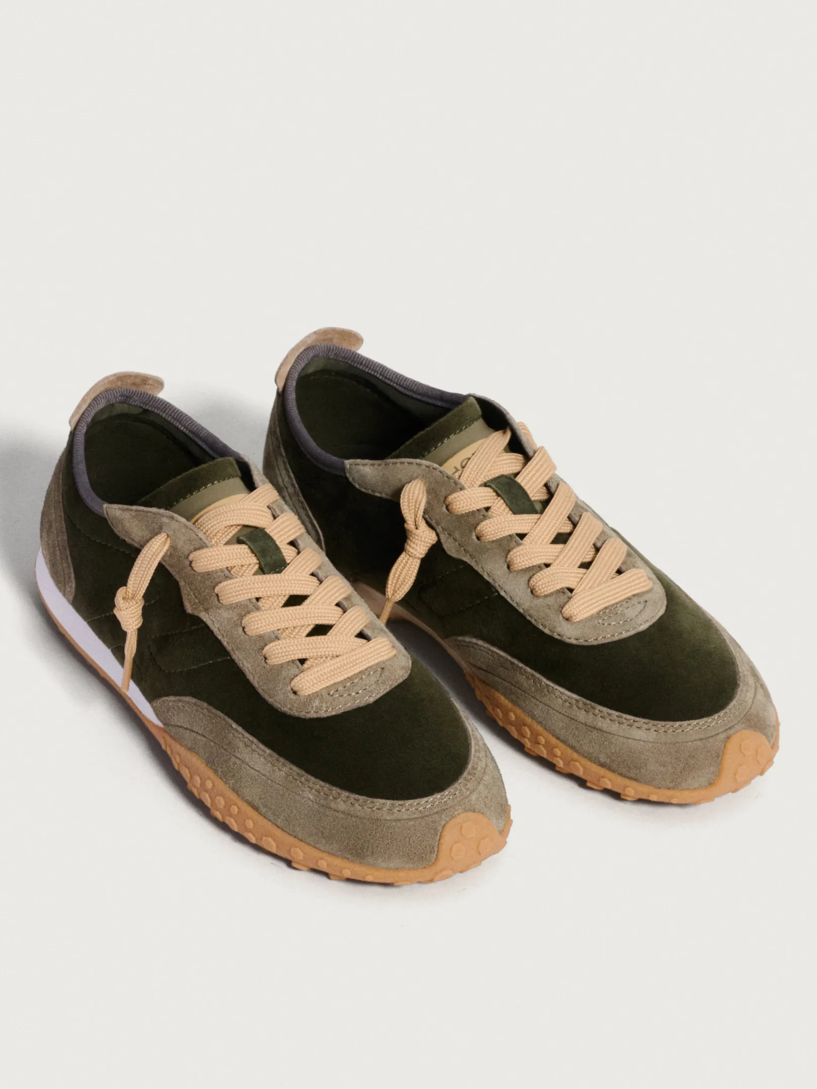 Las zapatillas HAWK de la colección BIRD capturan la esencia del otoño y la primavera con su diseño. Con una estética que fusiona la clásica forma deportiva con un toque sofisticado, destacan por sus líneas limpias y su perfil bajo. Con un equilibrio entre la piel y el tejido, destacan por su confort. Los tonos verdes bosque y detalles de gamuza se complementan con la suela de goma amarilla, que hacen un guiño a las zapatillas de fútbol pero con un toque moderno. Ideales para combinar con una falda denim o con pantalones amplios.
