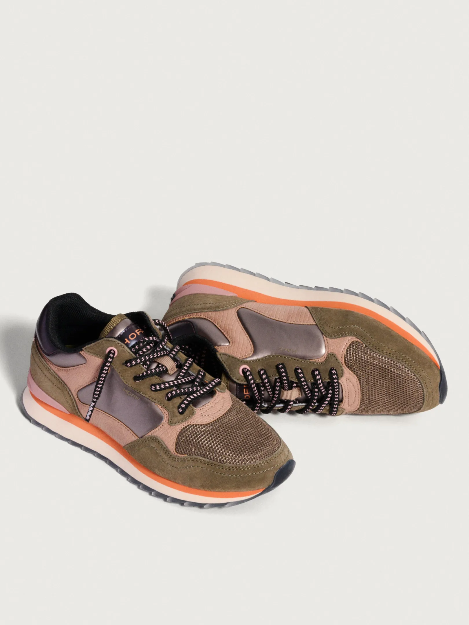 Estas zapatillas, inspiradas en Ljubljana, destacan por su diseño único y moderno. El ante en verde pino, el caqui con textura de serpiente y los toques de plata, junto con una línea naranja en la suela, las hacen realmente especiales. Con una combinación de cuero, nailon y material sintético, son una mezcla de estilo. La plantilla Memory Foam® proporciona un confort excepcional para todo el día. Combínalas con una camiseta oversize para un look moderno y sofisticado.