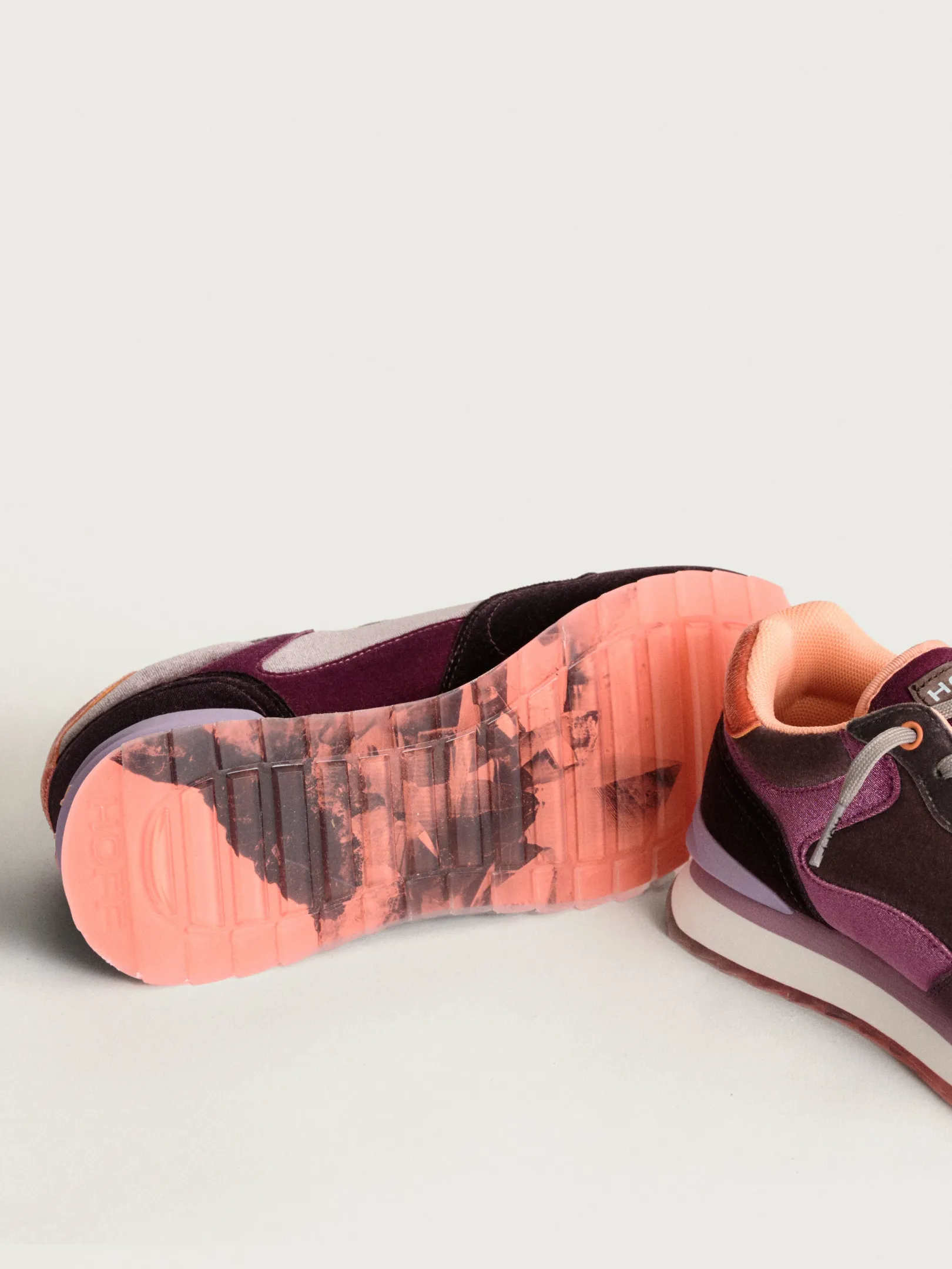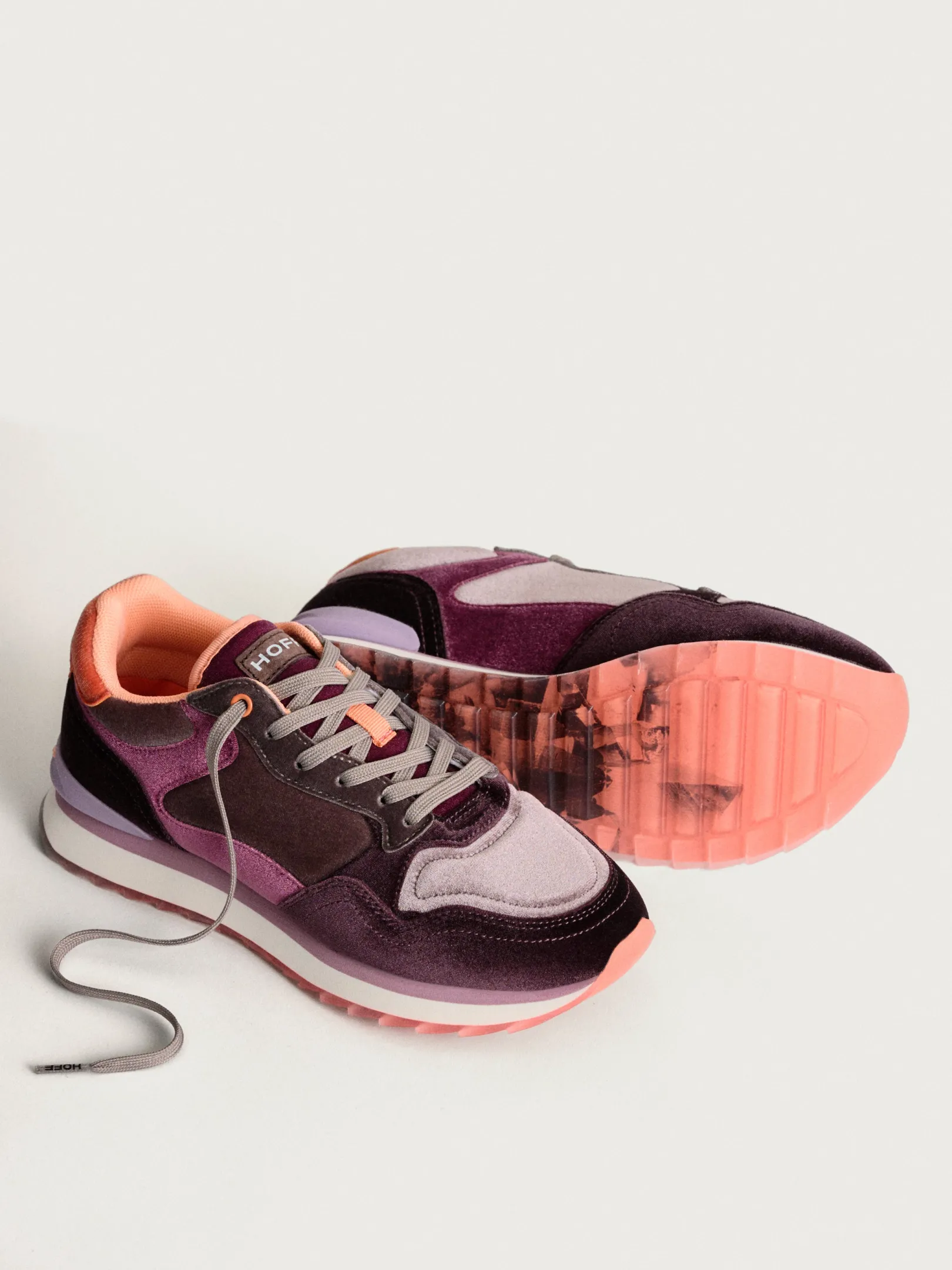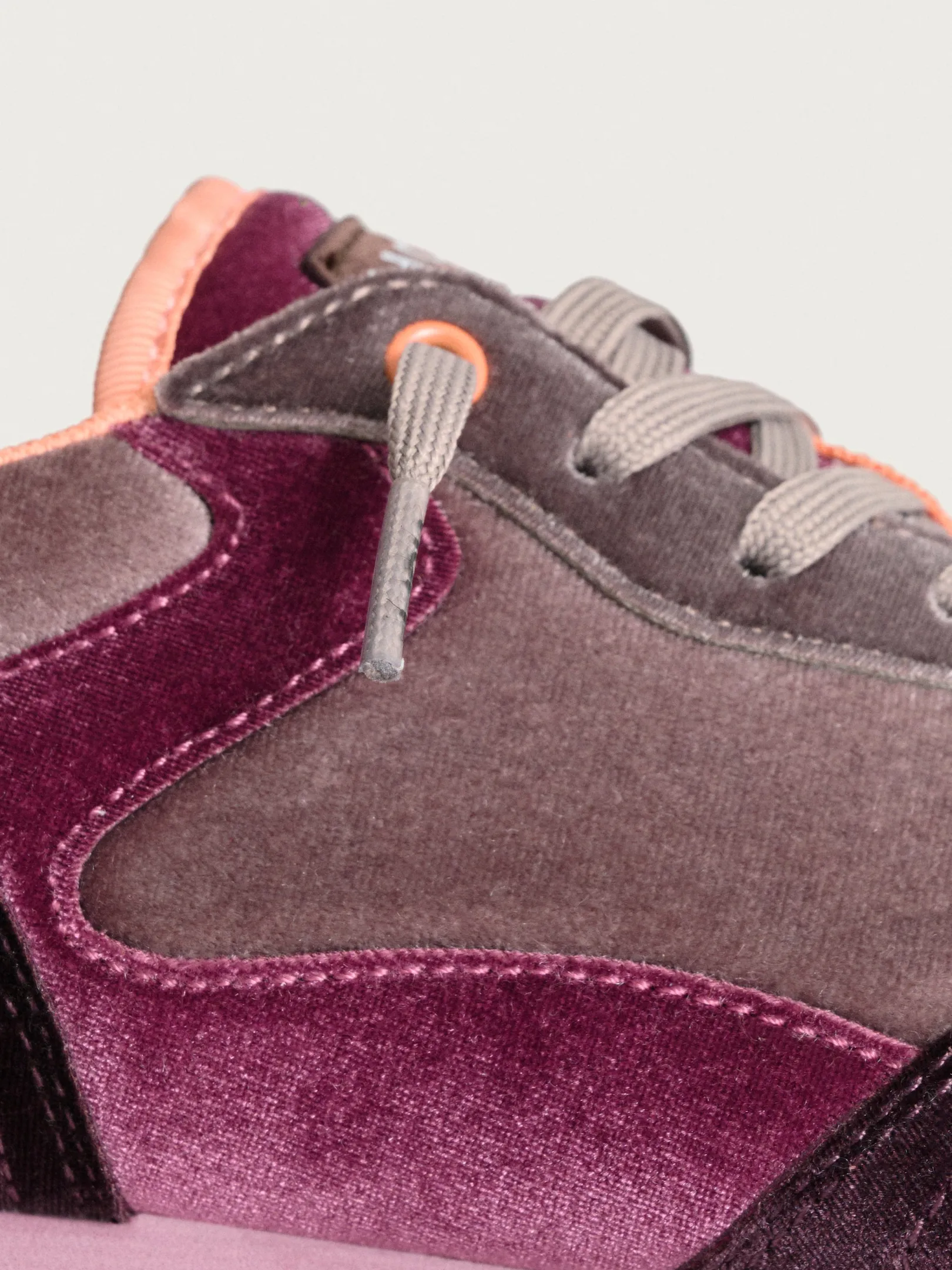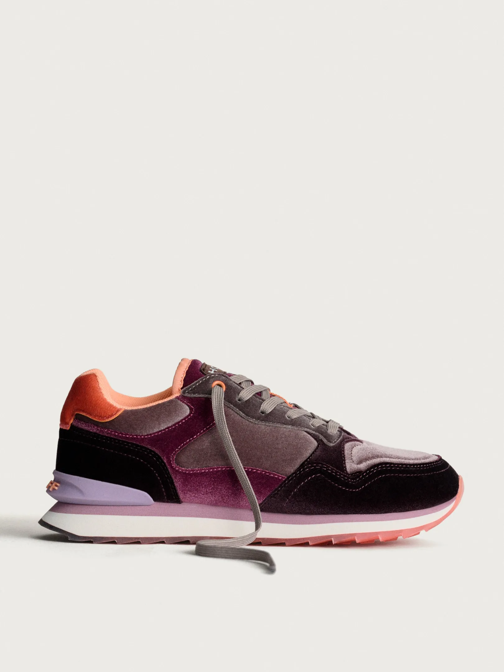 La zapatilla AMETHIST destaca por su elegante silueta, delineada con cuero y detalles en nylon. Lo que más resalta de este modelo es el terciopelo, que las envuelve en tonos de amatista, ofreciendo una sensación de lujo y sofisticación. Este detalle de terciopelo no solo eleva la estética visual, sino que también aporta una textura suave al tacto.