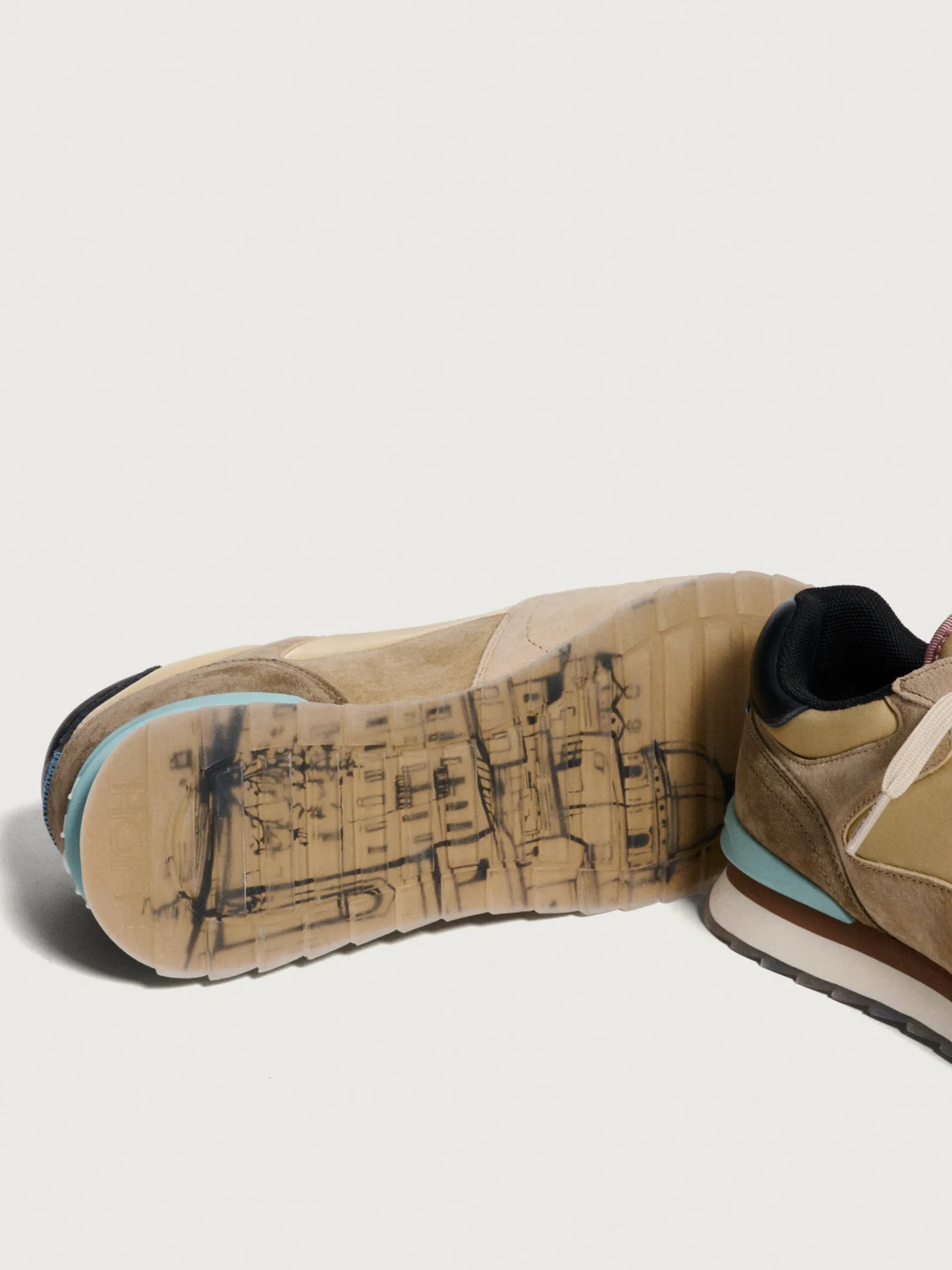 Experimenta el encanto de Avignon con estas elegantes zapatillas para hombre. Con tonos crema, sutiles toques de rosa palo y detalles en goma azul cielo, estas zapatillas son una declaración de estilo sofisticado. Elaboradas con una combinación de cuero certificado y nailon, ofrecen una fusión perfecta de moda y funcionalidad. La plantilla Memory-Foam (R) proporciona comodidad durante todo el día, mientras que la suela robusta garantiza durabilidad. Combínalas con unos pantalones chinos y una camisa de lino para un look urbano y elegante.