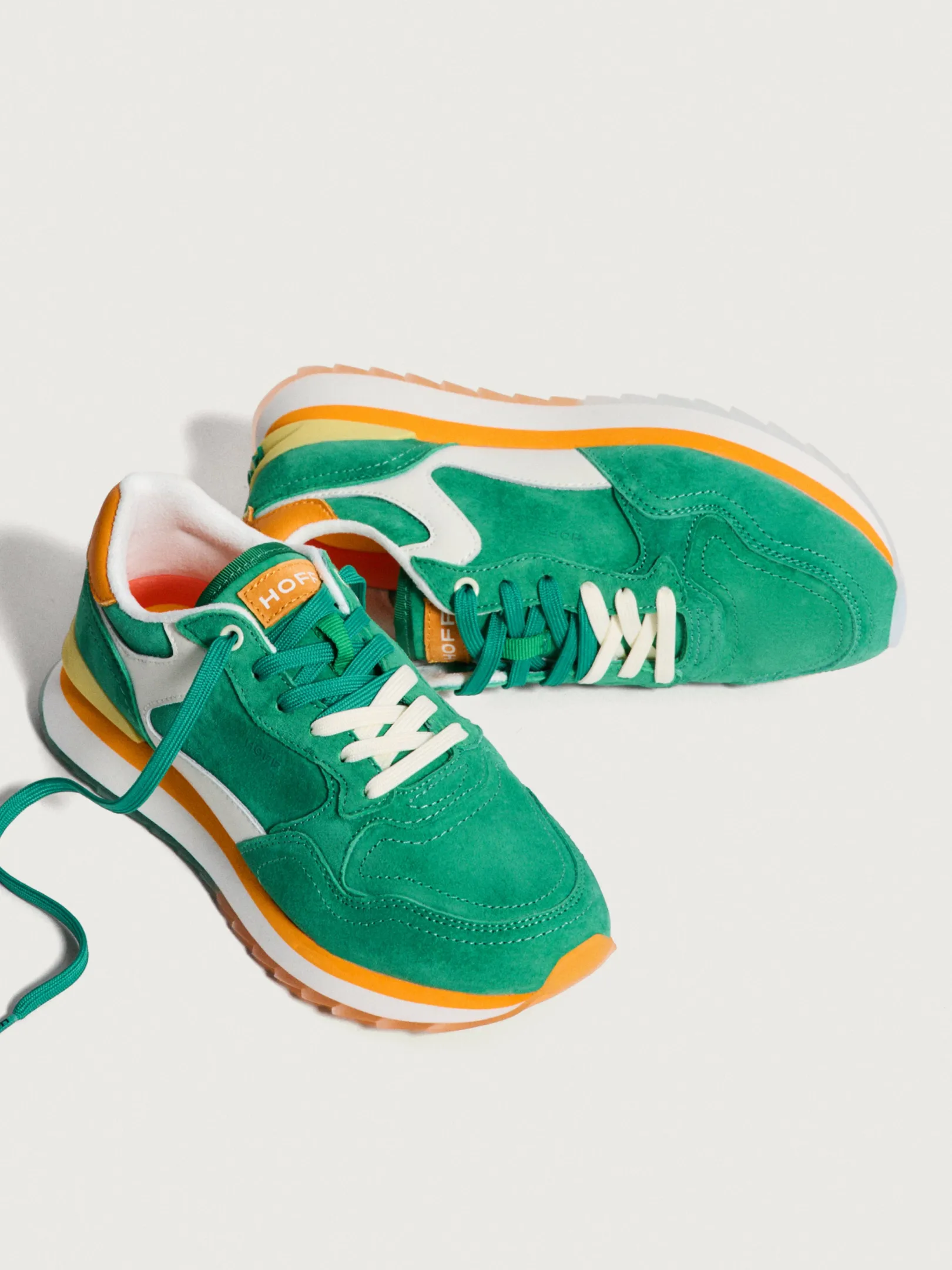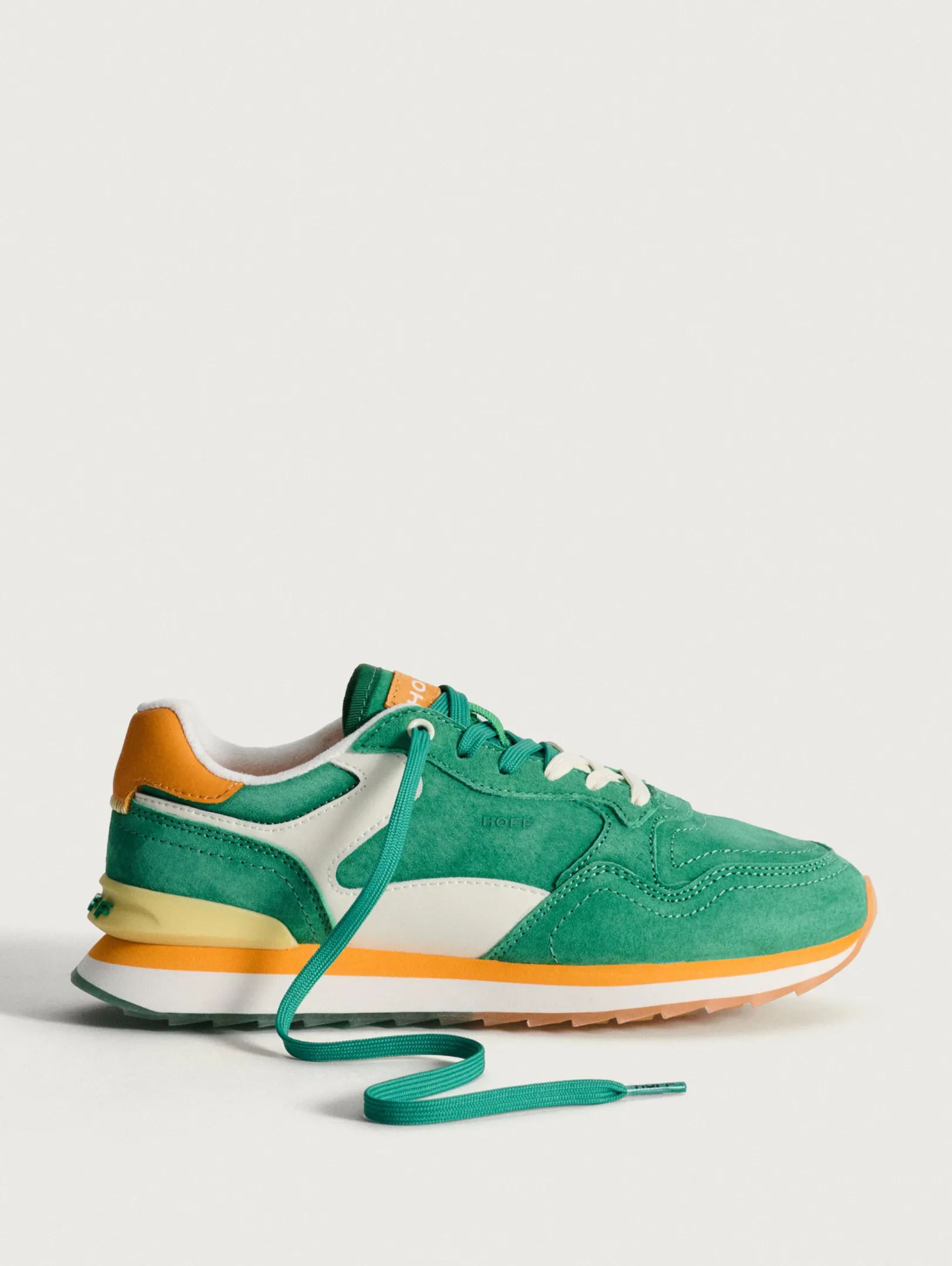 La zapatilla VIRIDIS WOMAN de nuestra línea celebra a las atletas que van más allá de alcanzar metas; ellas redefinen los límites de lo posible. Este modelo encapsula la esencia del dinamismo y el estilo. Diseñada en ante y presentada en una paleta vibrante de verdes intensos con detalles en amarillo dorado, ofrece un diseño que puede realzar cualquier conjunto, desde el denim más casual hasta estampados.
