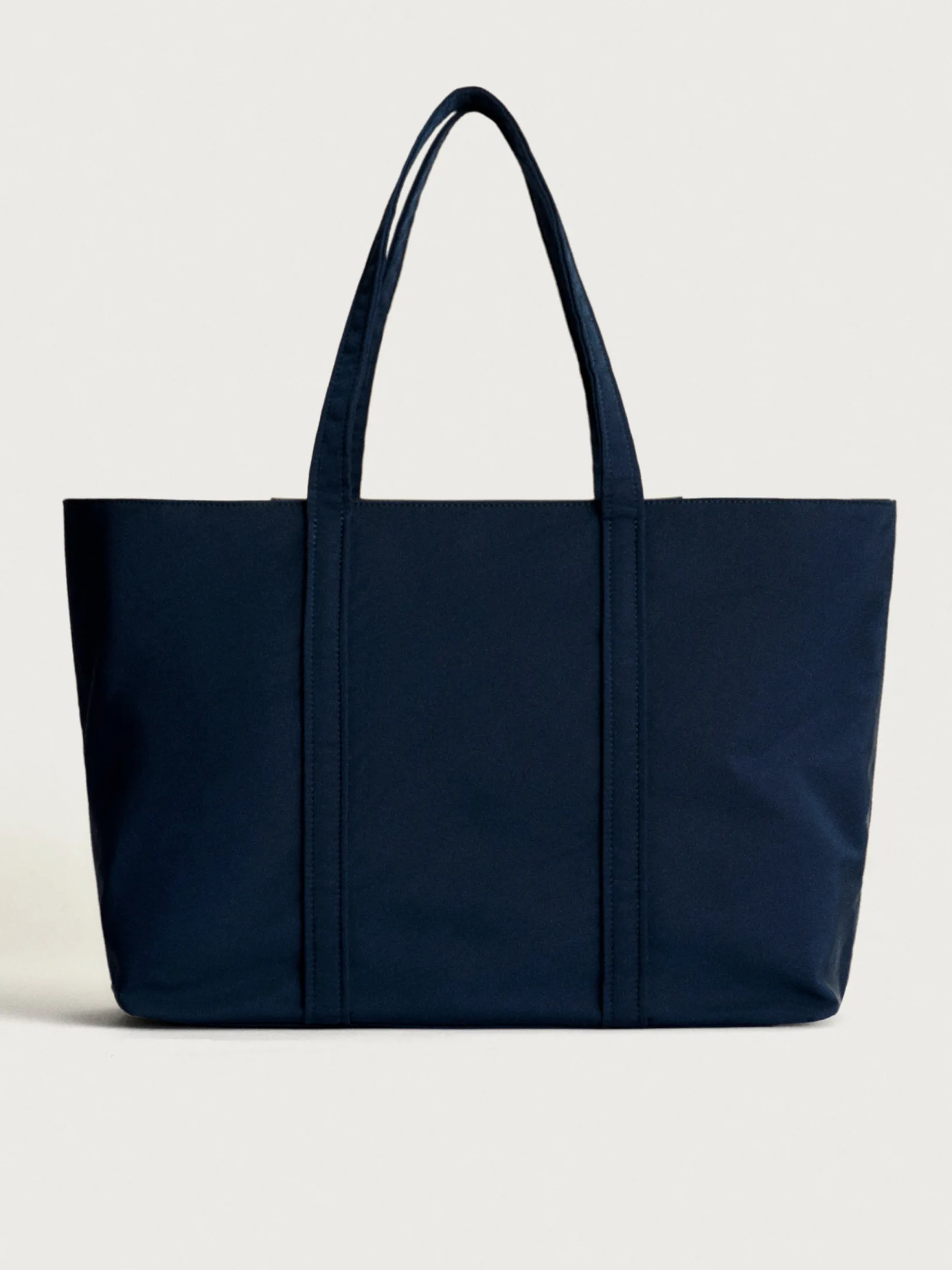 El Shopper DAILY AZUL MARINO es perfecto para cuando necesitas llevar mucho contigo y deseas hacerlo con estilo. El tono azul marino, que contrasta con el bolsillo negro que presenta el logo en relieve, lo hace elegante y sutil. El interior forrado incluye dos prácticos bolsillos, uno de ellos con cremallera. Ligero y fácil de guardar gracias a su material, pero al mismo tiempo lo suficientemente espacioso para llevar incluso un portátil. Un básico con estilo para complementar tu look, ya sea para ir al trabajo, a la universidad o de viaje. El accesorio ideal para tu día a día.