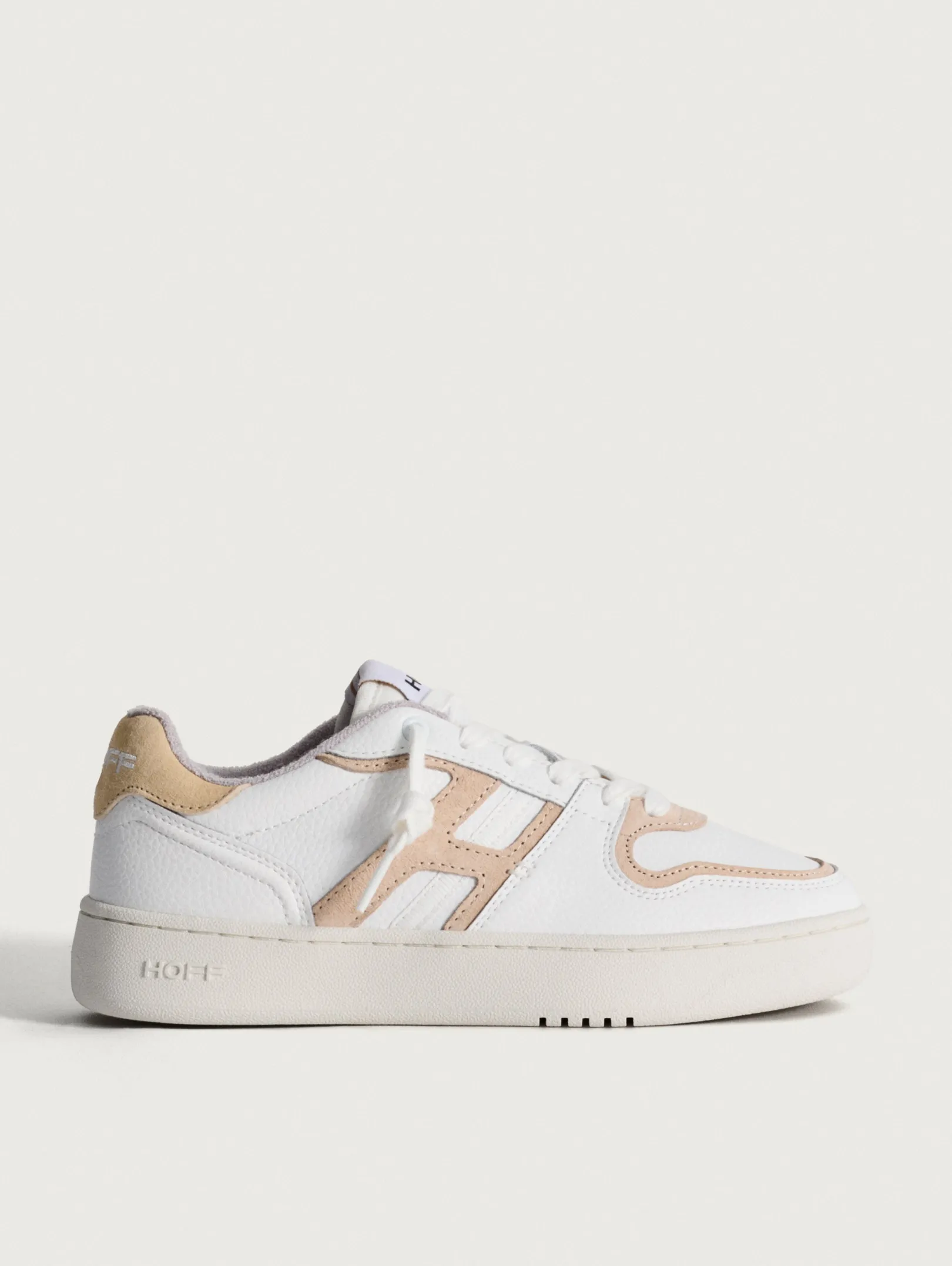 Inspirado en la estación CONVENT GARDEN, este modelo combina practicidad y modernidad en su diseño deportivo. Su estilo bamba-skate destaca por sus detalles de piel monocolor en contraste con el tono camel en los laterales y frente. Estas zapatillas están diseñadas para caminar con comodidad gracias a su plantilla memory foam. La suela de goma reciclada imita la robustez del pavimento de la estación y destaca por sus detalles jaspeados. El logo bordado en la parte posterior añade la firma de la marca. Perfectas por su versatilidad que te permiten usarlas en cualquier look, ya sea con falda o vaqueros.
