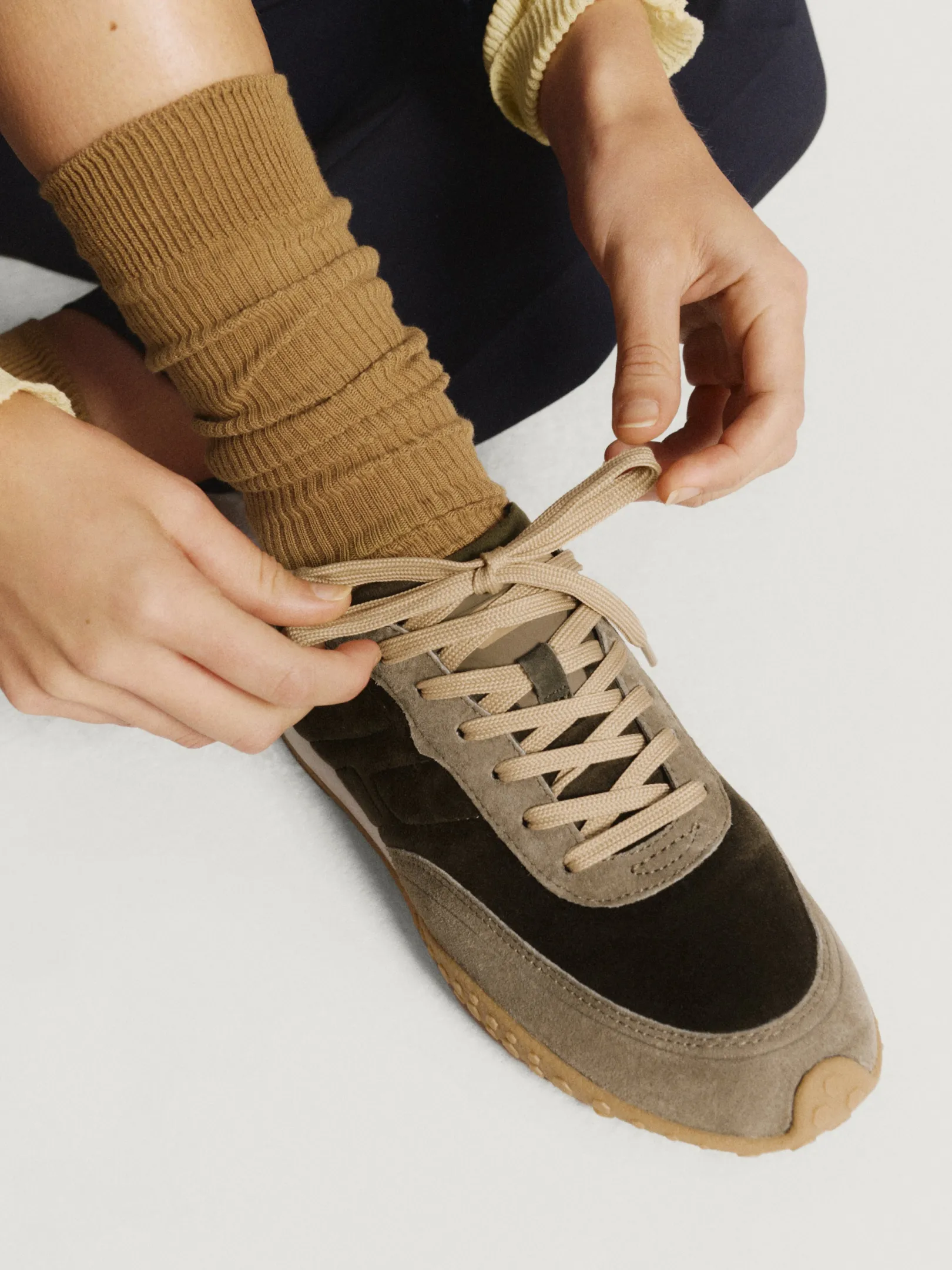 Las zapatillas HAWK de la colección BIRD capturan la esencia del otoño y la primavera con su diseño. Con una estética que fusiona la clásica forma deportiva con un toque sofisticado, destacan por sus líneas limpias y su perfil bajo. Con un equilibrio entre la piel y el tejido, destacan por su confort. Los tonos verdes bosque y detalles de gamuza se complementan con la suela de goma amarilla, que hacen un guiño a las zapatillas de fútbol pero con un toque moderno. Ideales para combinar con una falda denim o con pantalones amplios.
