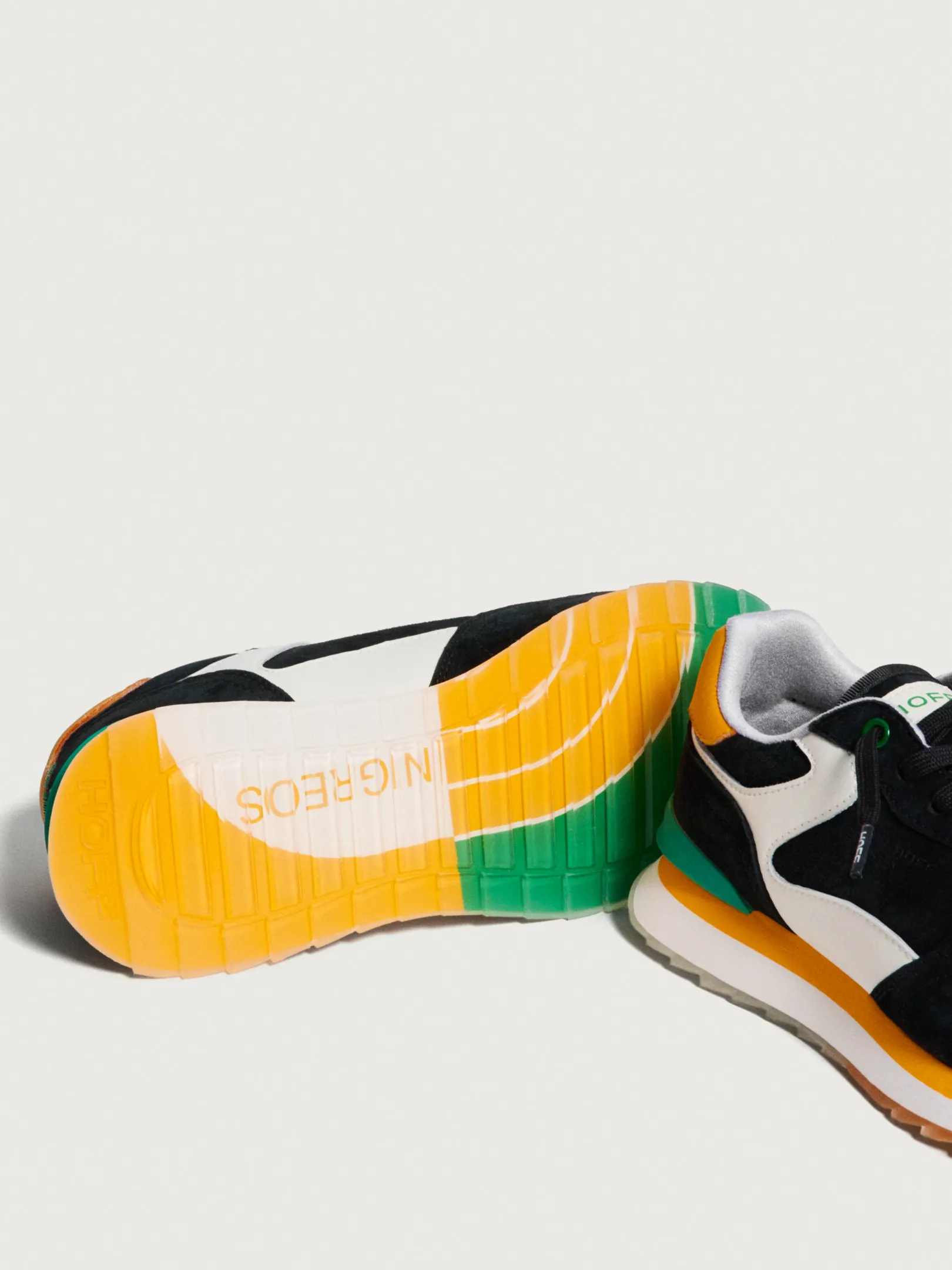 La zapatilla NIGREOS WOMAN de nuestra colección celebra a las atletas que no solo alcanzan sus metas sino que también redefinen los límites de lo posible. Este modelo encapsula la esencia del dinamismo y el estilo. Diseñadas en ante, presenta una paleta en negro, acentos en verde y detalles en blanco, dando como resultado un diseño que puede elevar cualquier conjunto, desde un denim casual hasta estampados.