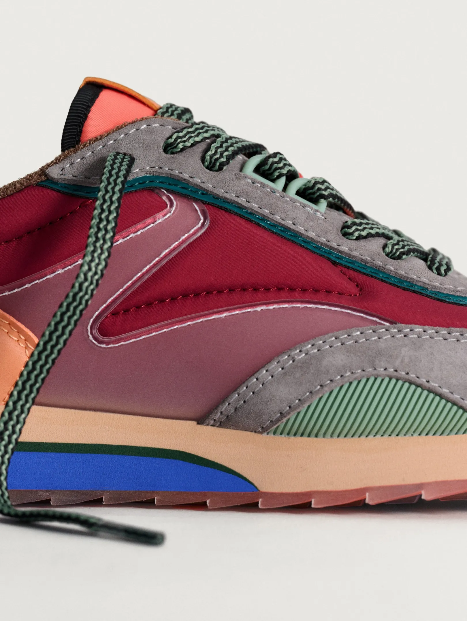 Explora la fusión entre el arte y la moda con la colección ART X ABBEY LOSSING. Estas zapatillas son una expresión de la inspiración de la ilustradora, fusionando su pasión por el color, los patrones y las formas. Las zapatillas THE JAMES están confeccionadas con una combinación de materiales que incluyen piel de serraje, tejido y detalles en goma. La combinación de colores, como el vino tinto, el gris y el naranja con destellos irisados, las convierte en una obra de arte. Su diseño retro y su suela tipo grofre serigrafiada añaden un toque de nostalgia, mientras que la plantilla Memory-Foam® garantiza comodidad durante todo el día. Son el complemento ideal. Combínalas con un vestido o falda monocolor para destacar en cualquier ocasión.