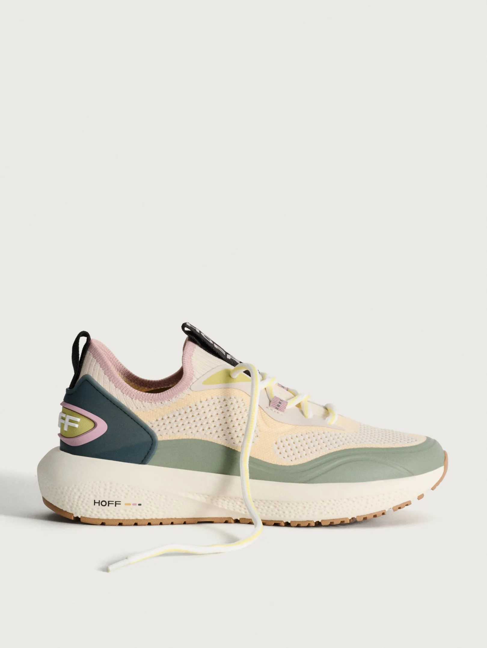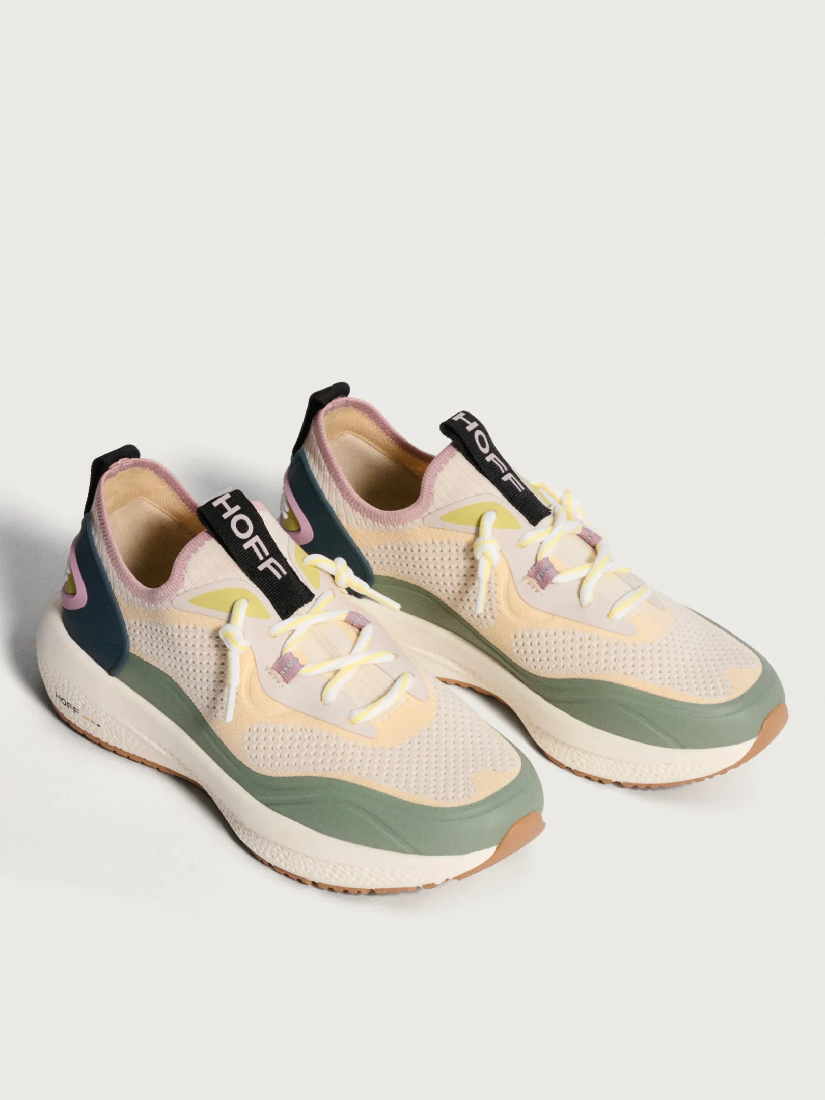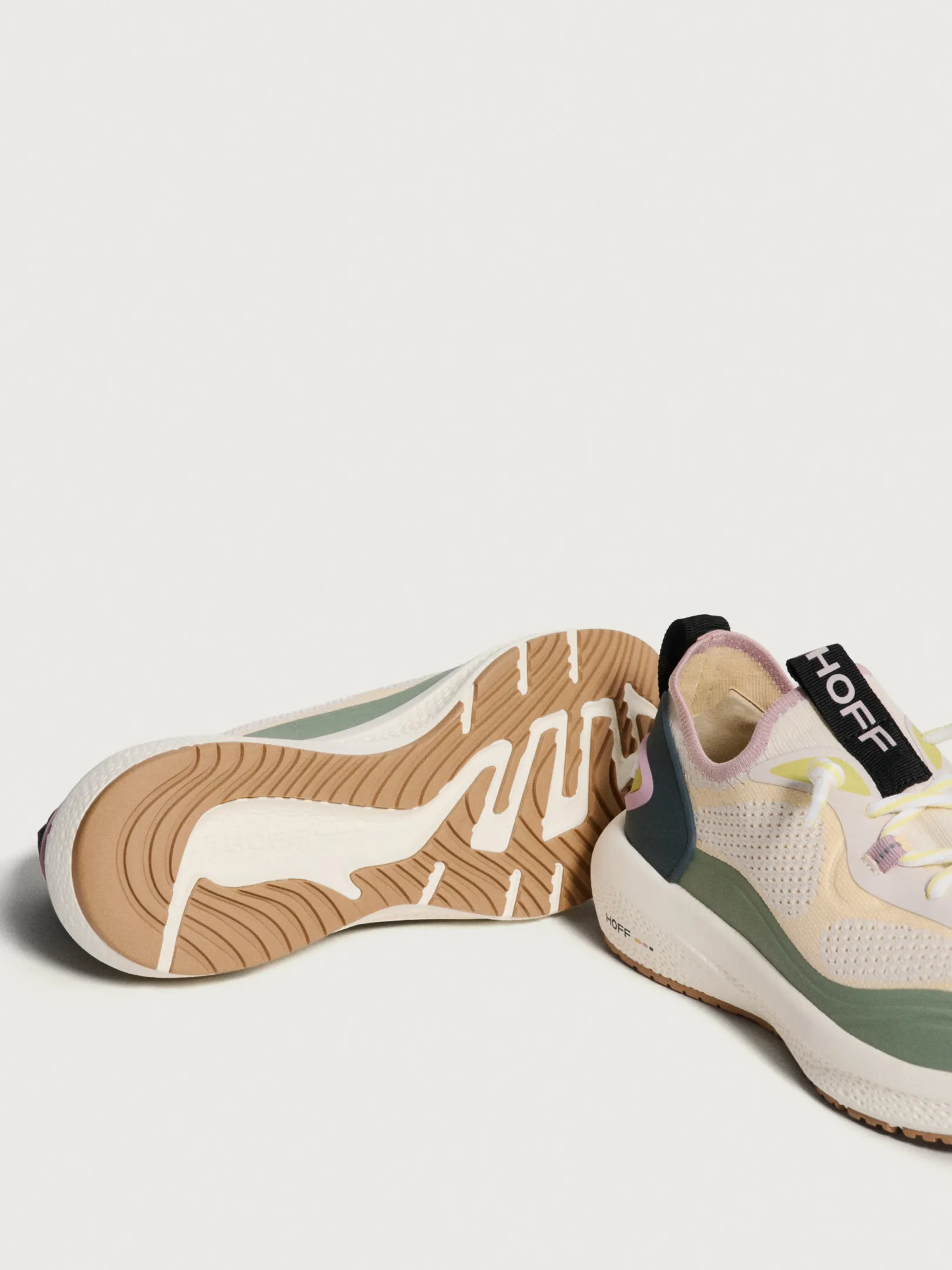 El estilo y la funcionalidad se fusionan en BEAT. Estas zapatillas de estilo running en tono crema con sutiles toques de rosa y curuba, con puntera de goma en verde oliva y parte trasera a juego, son el complemento perfecto para días en los que buscas comodidad con un toque casual y deportivo. La plantilla OrthoLite garantiza ligereza, amortiguación y soporte. El relieve del logo en verde limón añade un toque distintivo. Su diseño elástico facilita ponerlas y quitarlas, ideales para usar sin calcetines.