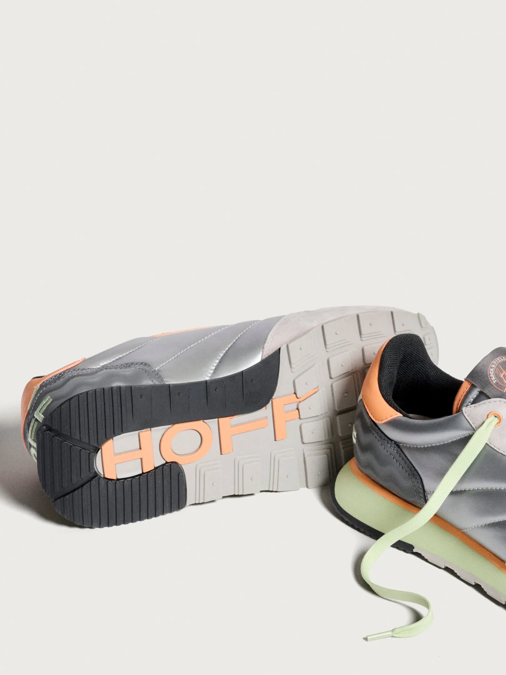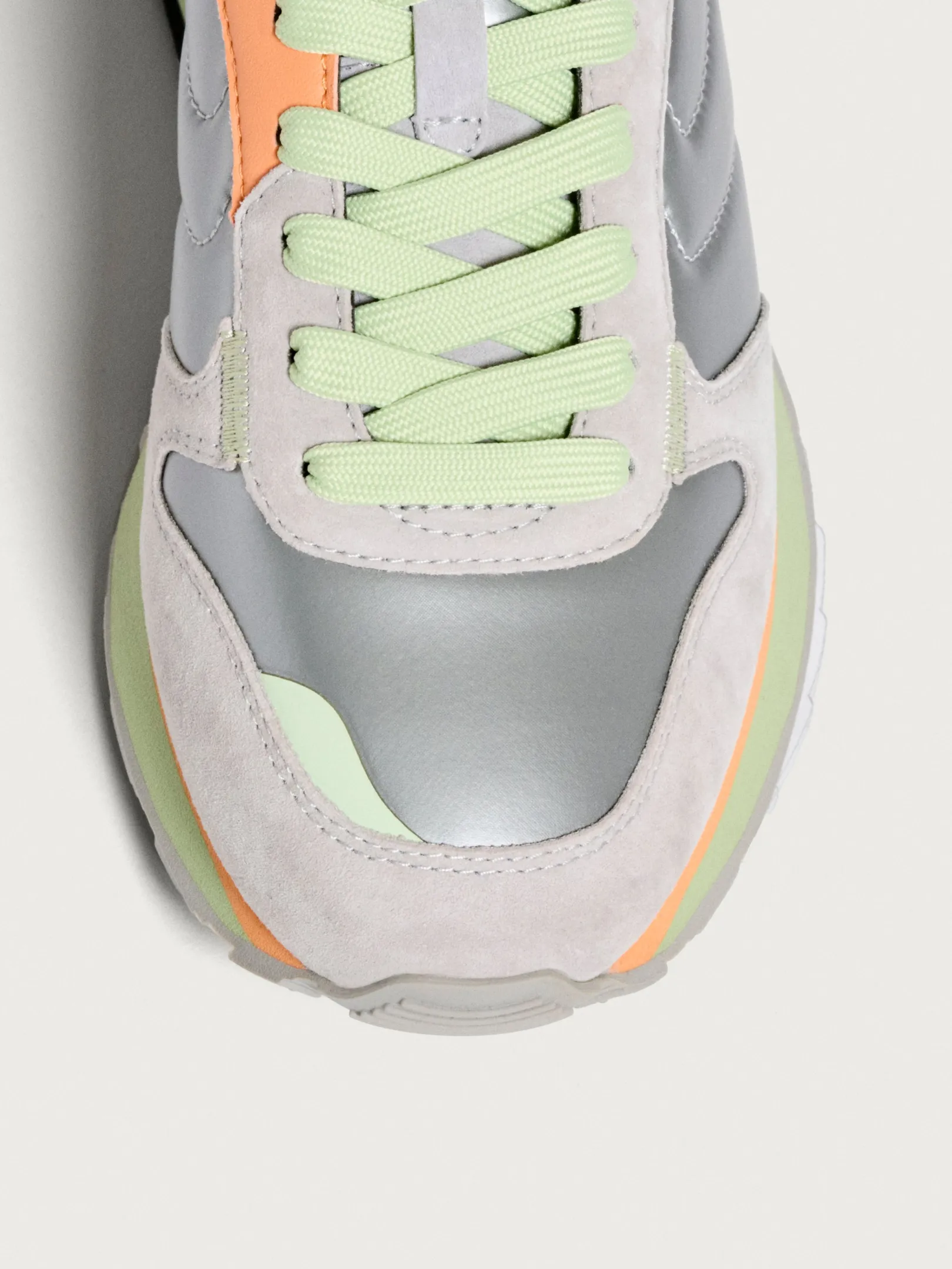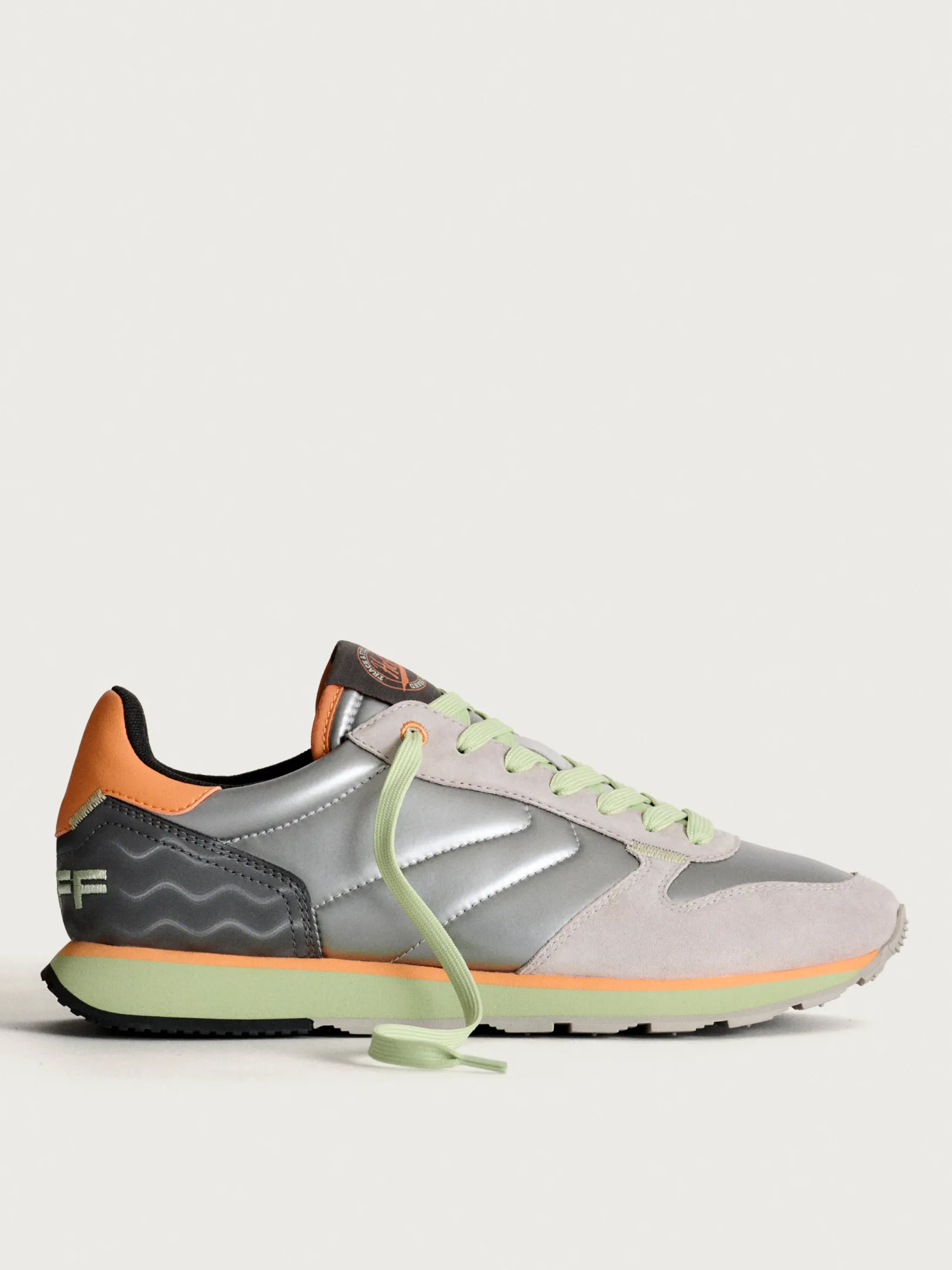 Reflejan la esencia de las zapatillas de deporte retro con un enfoque moderno. El cuero suave y el tejido se entrelazan, creando una estética dinámica realzada por detalles irisdicentes. Los toques de naranja vibrante sobre una base de gris brillante claro y oscuro otorgan una apariencia auténtica y versátil. La plantilla Memory-Foam (R) ofrece una comodidad que se adapta, mientras que la suela proporciona una base sólida para explorar la ciudad. Llévalas con una t-shirt y falda midi para un look casual.