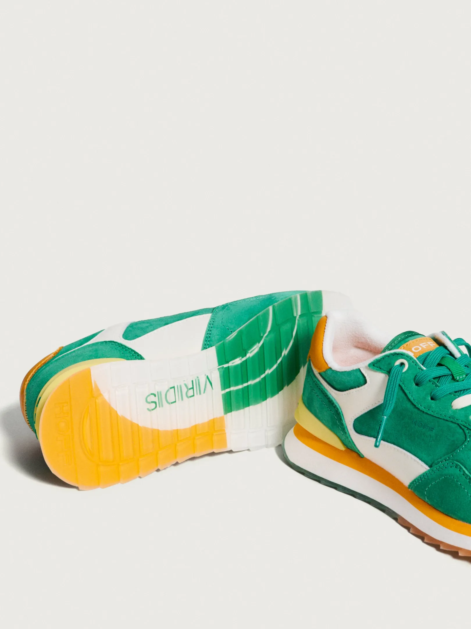 La zapatilla VIRIDIS WOMAN de nuestra línea celebra a las atletas que van más allá de alcanzar metas; ellas redefinen los límites de lo posible. Este modelo encapsula la esencia del dinamismo y el estilo. Diseñada en ante y presentada en una paleta vibrante de verdes intensos con detalles en amarillo dorado, ofrece un diseño que puede realzar cualquier conjunto, desde el denim más casual hasta estampados.