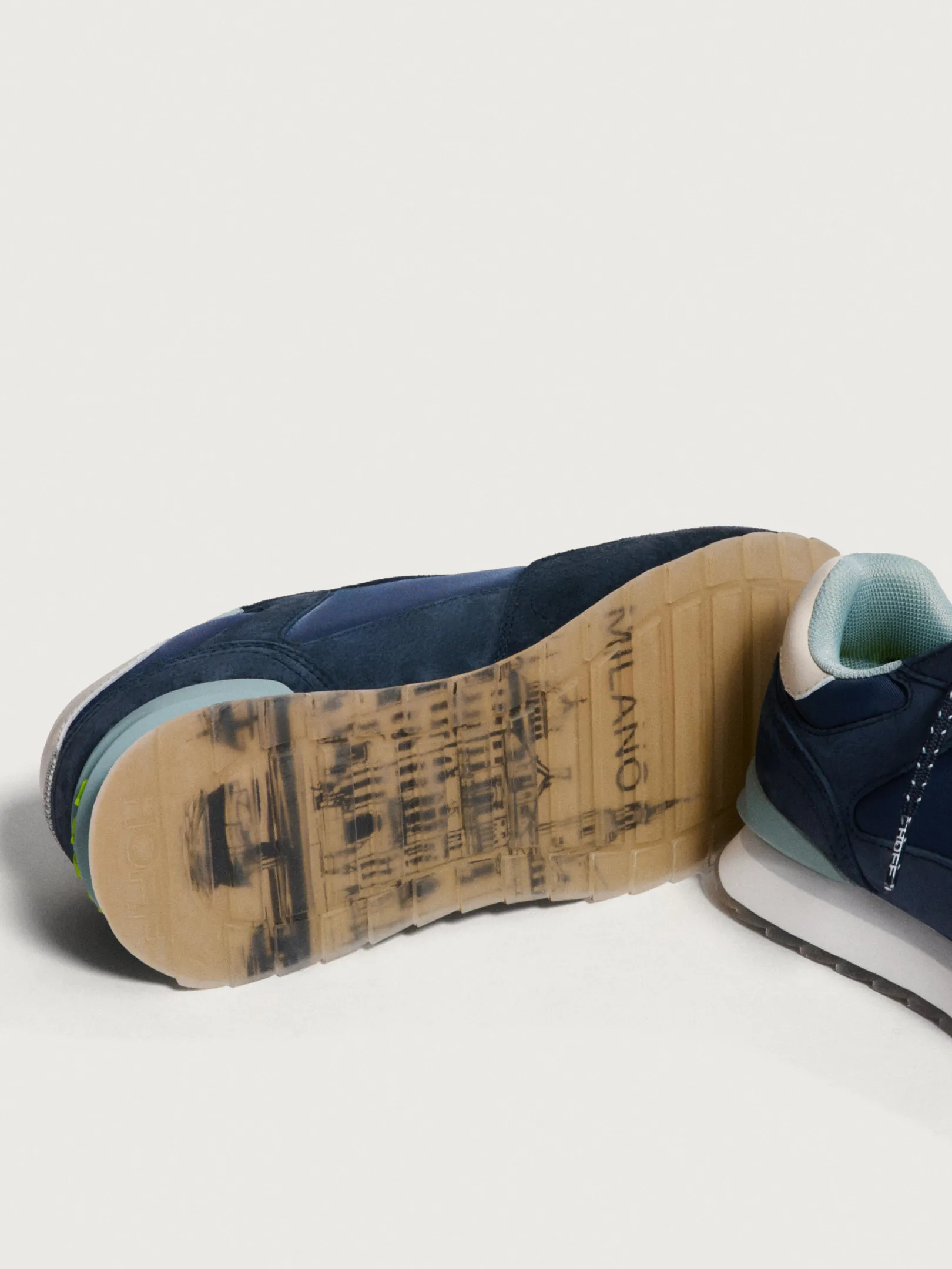 Esta es una de nuestras icónicas zapatillas, inspiradas en Milán, la capital de la moda. Con tonos azul oscuro, detalles en goma gris y una elegante talonera de piel, son un básico con estilo. Con una combinación de cuero certificado y nailon, ofrecen durabilidad y versatilidad. La plantilla Memory Foam® proporciona una comodidad excepcional, mientras que la suela resistente garantiza una pisada segura. Combínalas con una falda plisada y una blusa de seda para un look elegante y sofisticado.
