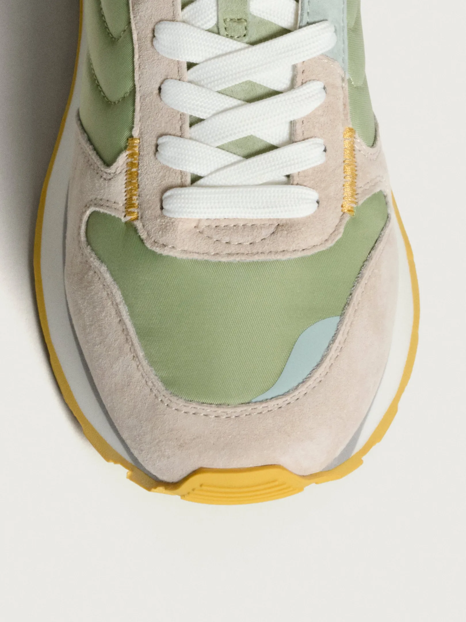 El estilo retro y vintage regresa con las MARATHON, una combinación de lo clásico y lo moderno en nylon verde pastel con detalles asimétricos en ante gris y azul petróleo, ideal para destacar en cualquier lugar y añadir un toque exclusivo. La suela con un diseño tipo gofre en tonos mostaza y naranja, junto con el logo en relieve y los detalles de goma en azul suave, son el toque final perfecto. Su ligereza y comodidad están garantizadas gracias a la plantilla memory-foam. Son ideales para combinar con jeans clásicos y tu camiseta favorita, perfectas para recorrer una nueva ciudad con mucho estilo.